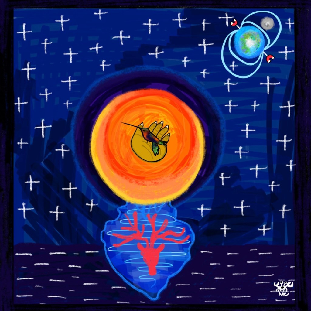 El colibrí dijo: “Este verano los incendios llegarán temprano y los fuegos bailarán por los cerritos.” Y el colibrí se fue volando.